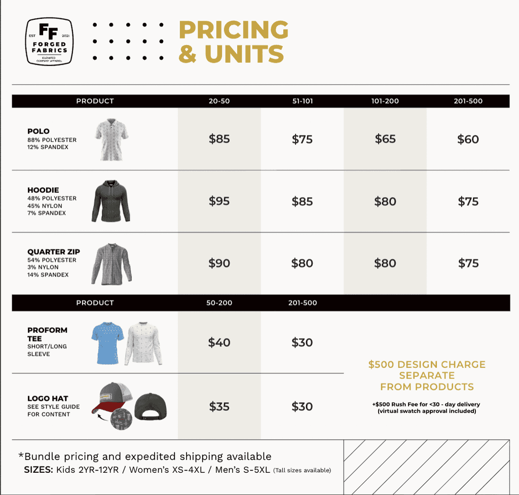 Teams work with Forged Fabrics for memorable, branded apparel across key moments: - Conferences & trade shows - Golf outings, retreats, and incentive trips - Holiday gifts for staff or clients - New hire welcome kits - Company anniversaries or product launches - Sales team uniforms - Customer appreciation gifts - Rebrands or logo refreshes